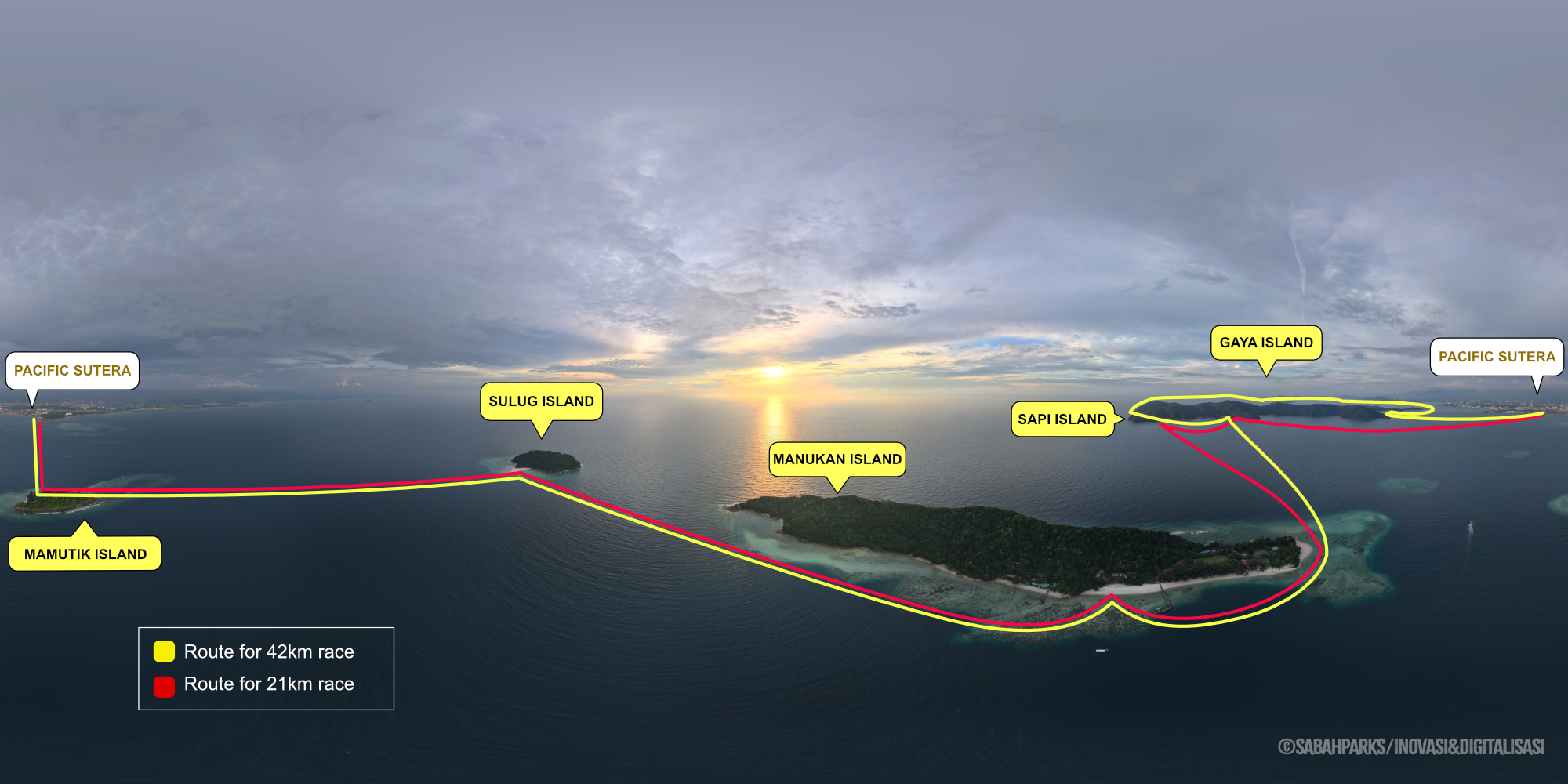 | 7:00am | Start of Full SUP Marathon (42km) Route: Marina > Gaya wreck > SMK Gaya > Gayana — Bungaraya — Sapi > Manukan > Sulug > Mamutik — Pacific Sutera |
